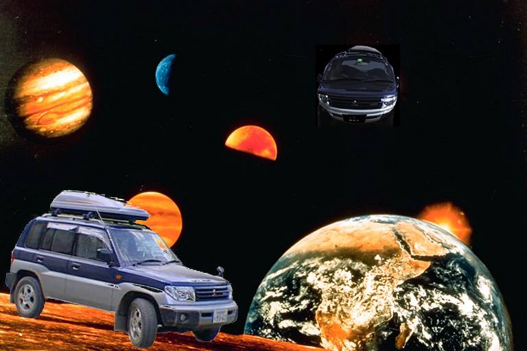 | この「創造的イオ・フォト」コーナーでは、皆様からイオの合成写真を募集しております。 パリダカラリーで快走する親パジェロと並んで走るイオ、 エベレスト登頂中のイオ、 スキューバダイビング中のイオなど、 スタイルにとらわれない楽しいイオのフォトを募集しております。 |